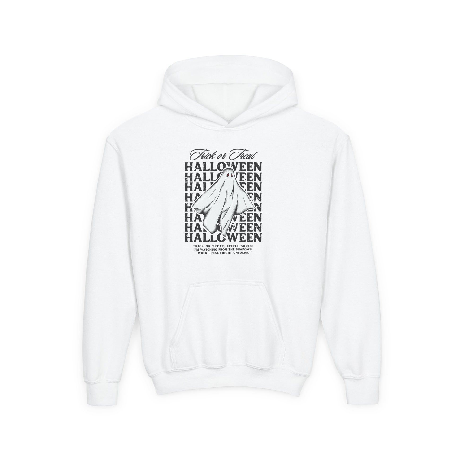 Halloween Youth Hoodie, Spooky Season Sweatshirt, Trick or Treat Pullover, Kids Halloween Apparel, White Halloween Hoodie